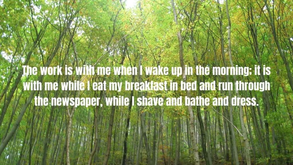 β€œThe work is with me when I wake up in the morning; it is with me while I eat my breakfast in bed and run through the newspaper, while I shave and bathe and dress.”
