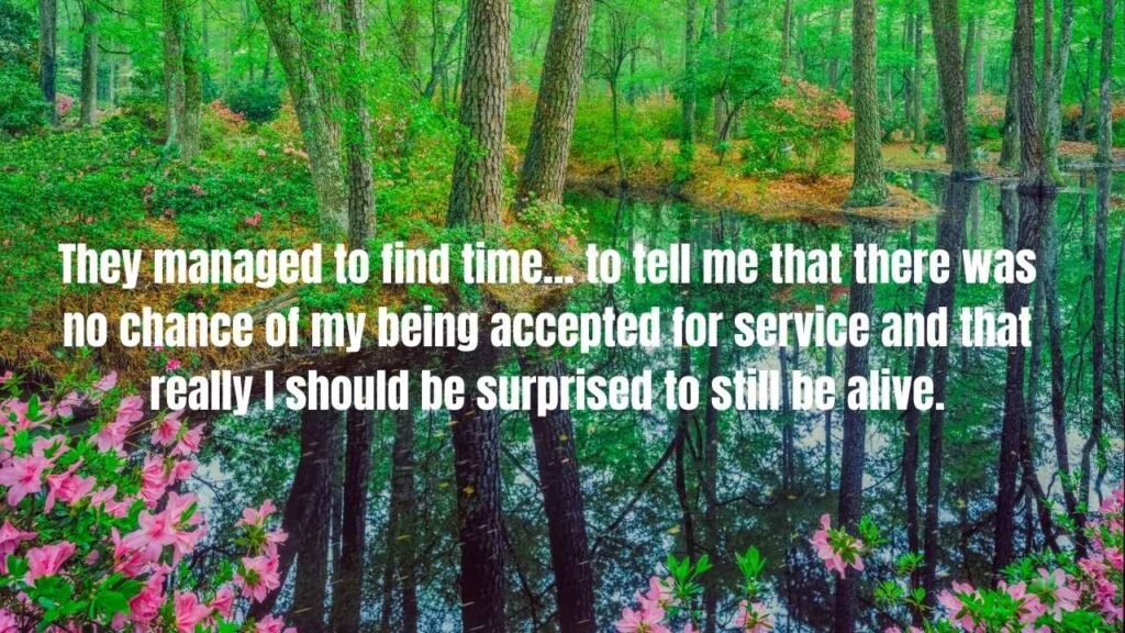 β€œThey managed to find time… to tell me that there was no chance of my being accepted for service and that really I should be surprised to still be alive.”